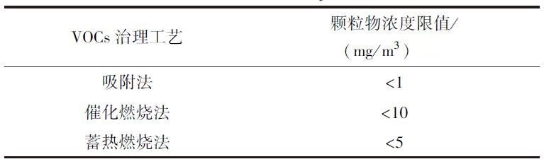 關(guān)于VOCs處理系統(tǒng)中顆粒物的濃度要求,目前國家已有相關(guān)技術(shù)規(guī)范,明確規(guī)定采用吸附法、催化燃燒法、蓄熱焚燒法時,有機廢氣中的顆粒物濃度限值如下所示。