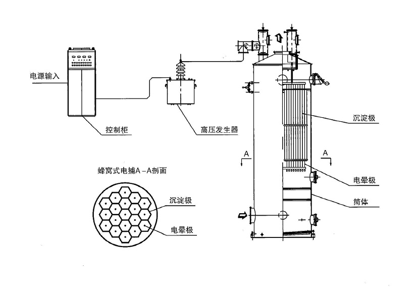 蜂窩式電捕焦油器工作原理