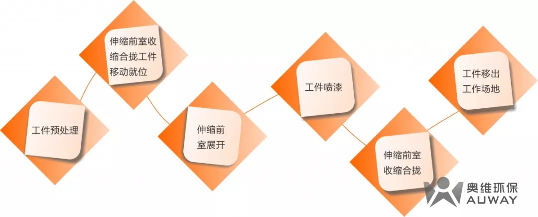 移動式噴漆伸縮房是配合除塵設(shè)備和廢氣處理設(shè)備使用的一種大型環(huán)保設(shè)備。主要用于體積大、重量重的工件的噴漆和打磨。伸縮房收攏時,將產(chǎn)品用行車移動至伸縮房伸縮范圍的適當(dāng)位置,開走行車,將伸縮房伸展開來,在伸縮房內(nèi)進行噴漆作業(yè)。作業(yè)完成后,收攏伸縮房,將噴漆后的產(chǎn)品使用行車挪走。伸縮房的使用,使工作場地的使用更科學(xué)合理。