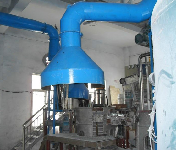 6、吸塵罩需要有一定的空間,以緩沖氣流減小正壓,與接管連接時(shí)收縮角不宜大于60°。與罩相接的一段管道最好垂直設(shè)置,以免進(jìn)入物料造成管道堵塞。