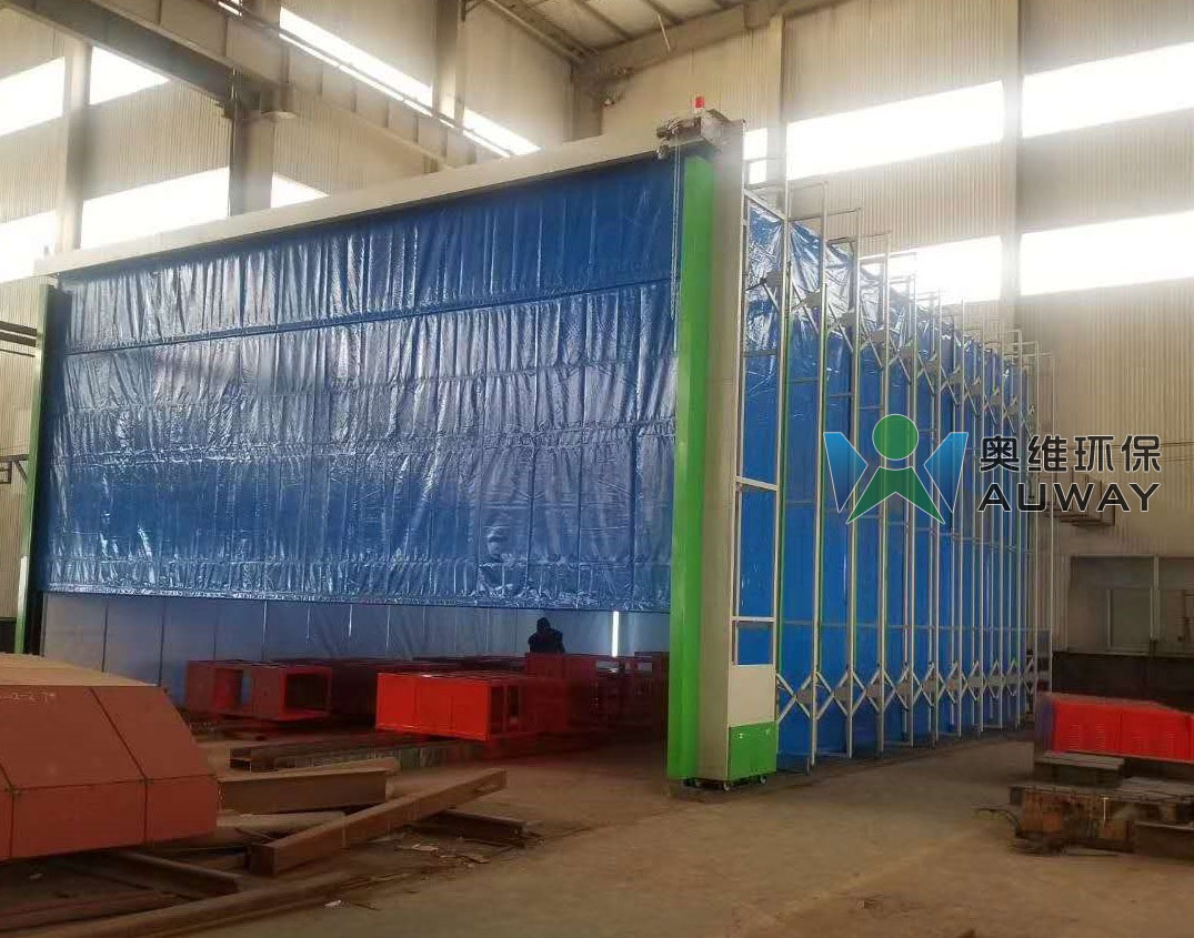 移動式噴漆伸縮房是配合除塵設(shè)備和廢氣處理設(shè)備使用的一種大型環(huán)保設(shè)備。主要用于體積大、重量重的工件的噴漆和打磨。伸縮房收攏時,將產(chǎn)品用行車移動至伸縮房伸縮范圍的適當(dāng)位置,開走行車,將伸縮房伸展開來,在伸縮房內(nèi)進行噴漆作業(yè)。作業(yè)完成后,收攏伸縮房,將噴漆后的產(chǎn)品使用行車挪走。伸縮房的使用,使工作場地的使用更科學(xué)合理。