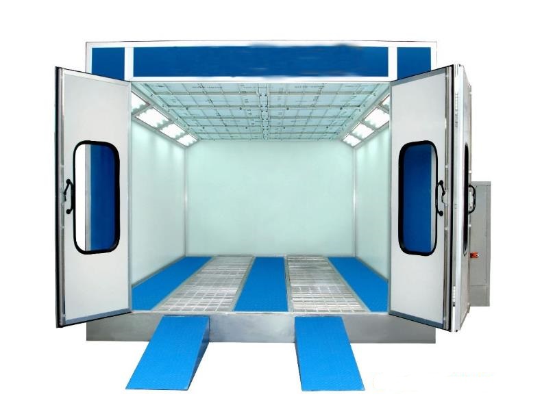 上進(jìn)風(fēng)、下排風(fēng)移動(dòng)噴漆房采用頂棚上進(jìn)風(fēng),下部排風(fēng),頂棚使用中效過(guò)濾棉對(duì)進(jìn)風(fēng)進(jìn)行初步凈化,防止粉塵影響漆面光潔度;排風(fēng)采用高效過(guò)濾棉,以過(guò)濾漆霧。